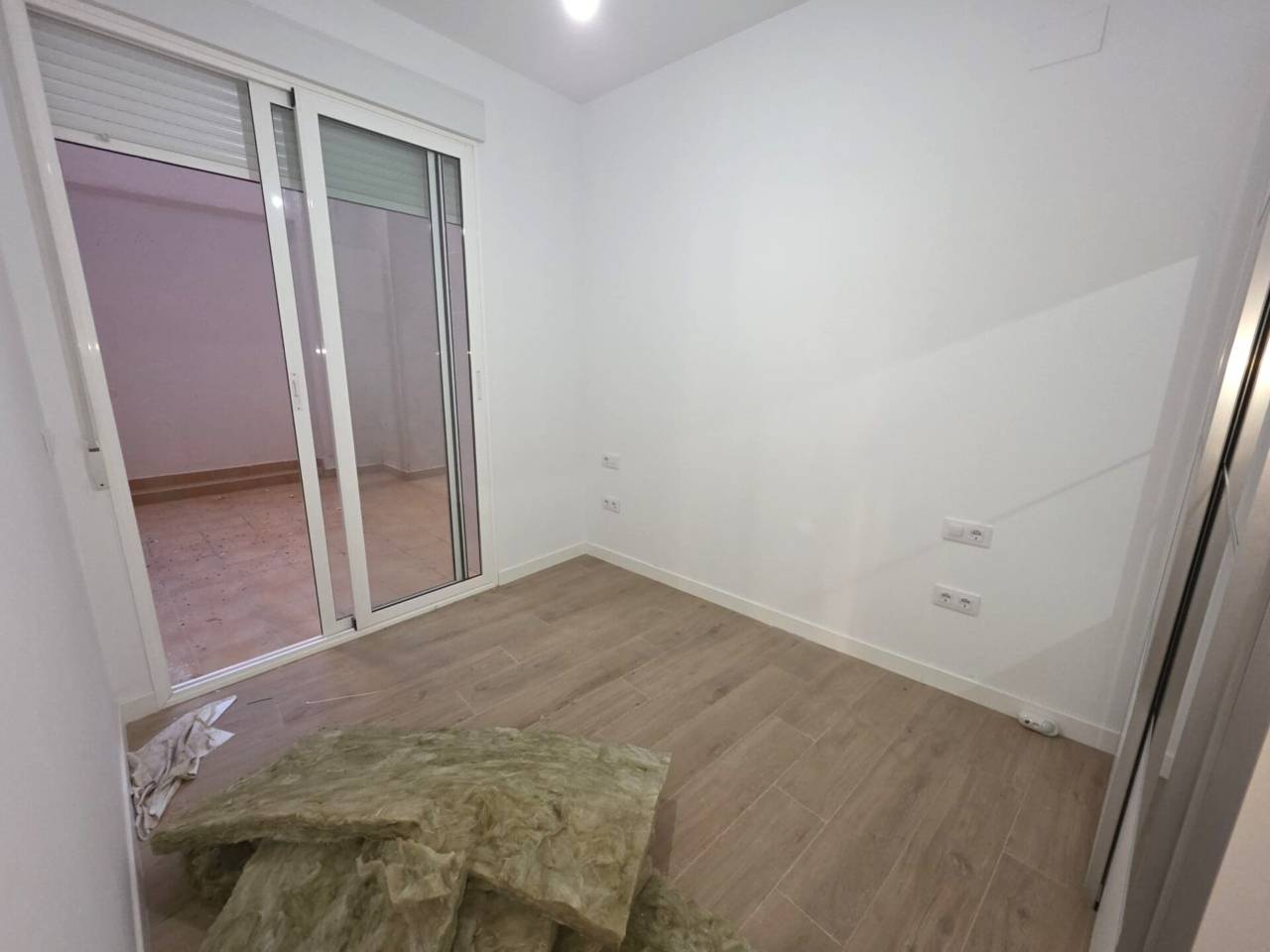 Tiene una superficie de 65 m2, distribuidos en 2 dormitorios, salón-comedor abierto a la cocina amueblada, patio de unos 15 m2, un baño y un aseo. La vivienda dispone de suelo de gres imitación madera, puertas lacadas en blanco y ventanas de aluminio abatibles, además de aire acondicionado con bomba de calor y frio, preinstalación de gas ciudad.