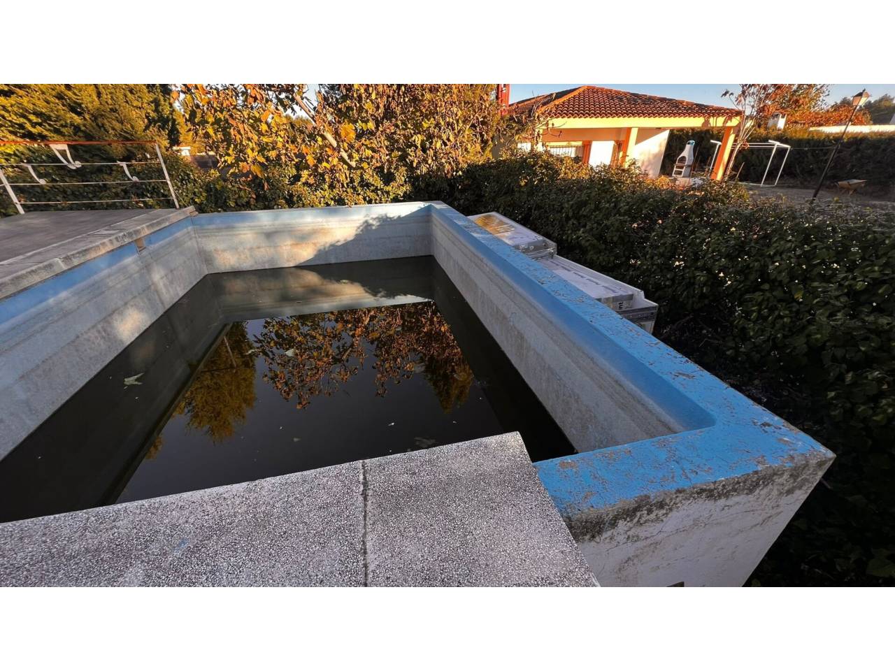Tiene una superficie de terreno de 1.786 m2, con una edificación de 250 m2 construidos y 94 m2 útiles. La vivienda dispone de suelo de terrazo, puertas de madrea y ventanas de hierro. Cuenta con un amplio terreno con piscina, zona de huerto, comedor y porche.