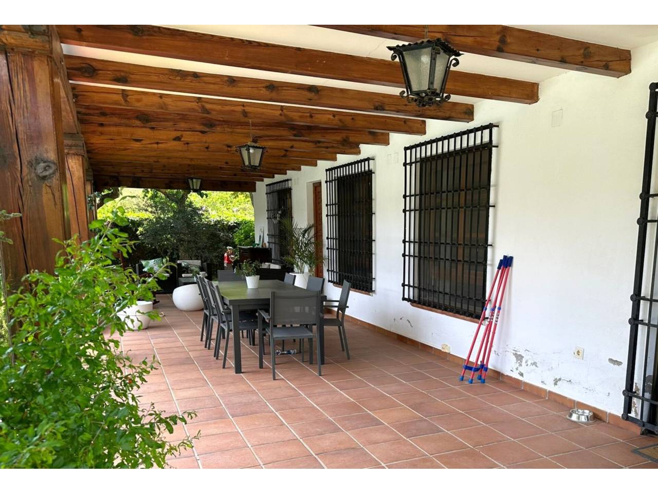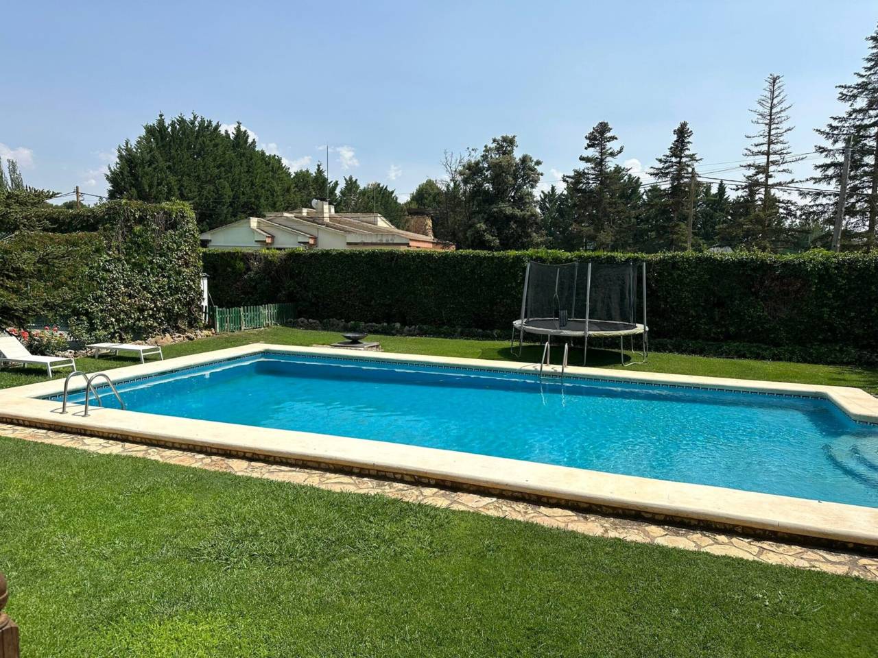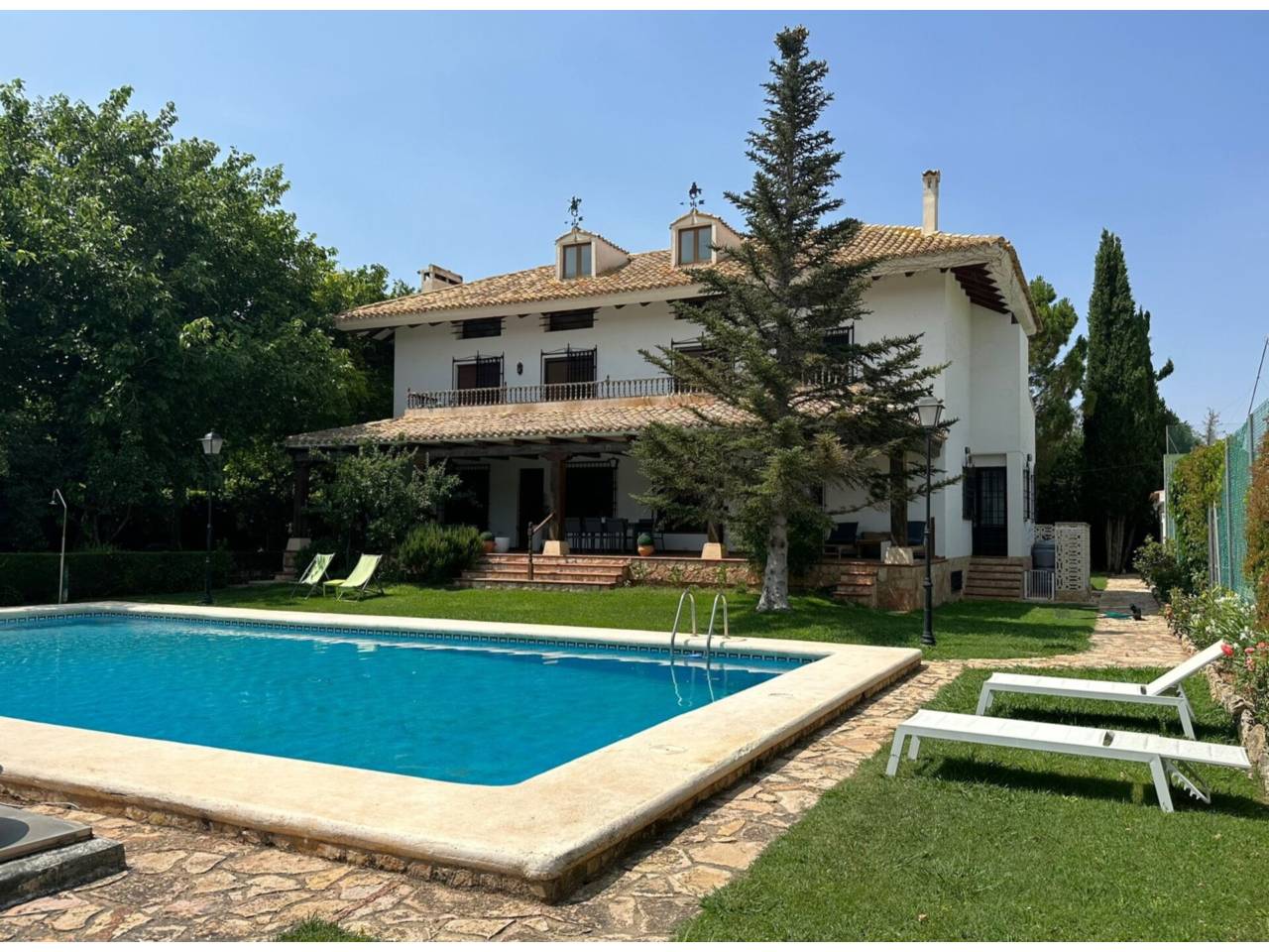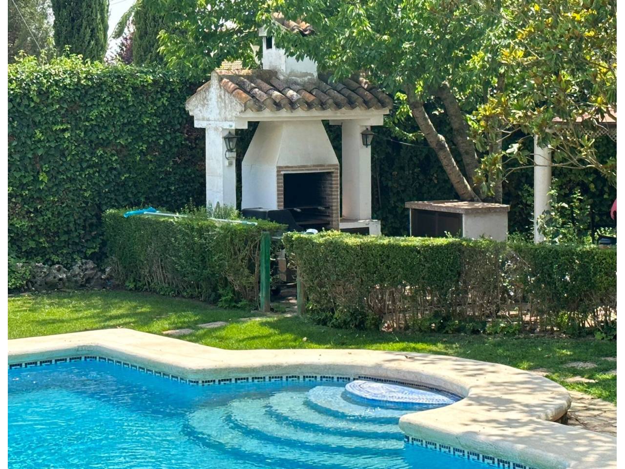 Cuenta con una parcela de 2.664 m2, en los cuales encontramos un amplio jardín con barbacoa, casa de 546.35 m2 con porche delantero y trasero, garaje y piscina.
