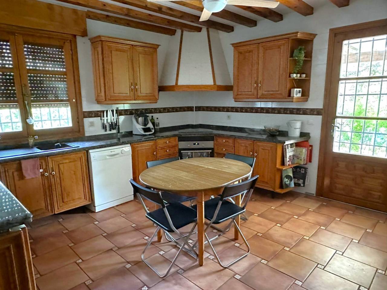 La vivienda está distribuida en 4 plantas. En el sótano encontramos la sala de calderas y una amplia sala de juegos con chimenea. En planta baja dispone de salón-comedor con chimenea, una pequeña sala de estar, 2 dormitorios con armarios empotrados, 3 baños completos y cocina con lavadero y despensa. Si subimos a la primera planta tenemos 3 dormitorios con balcón con vistas al jardín y la piscina y 3 baños completos. La planta de arriba abuhardillada cuenta también con dos dormitorios y un trastero.