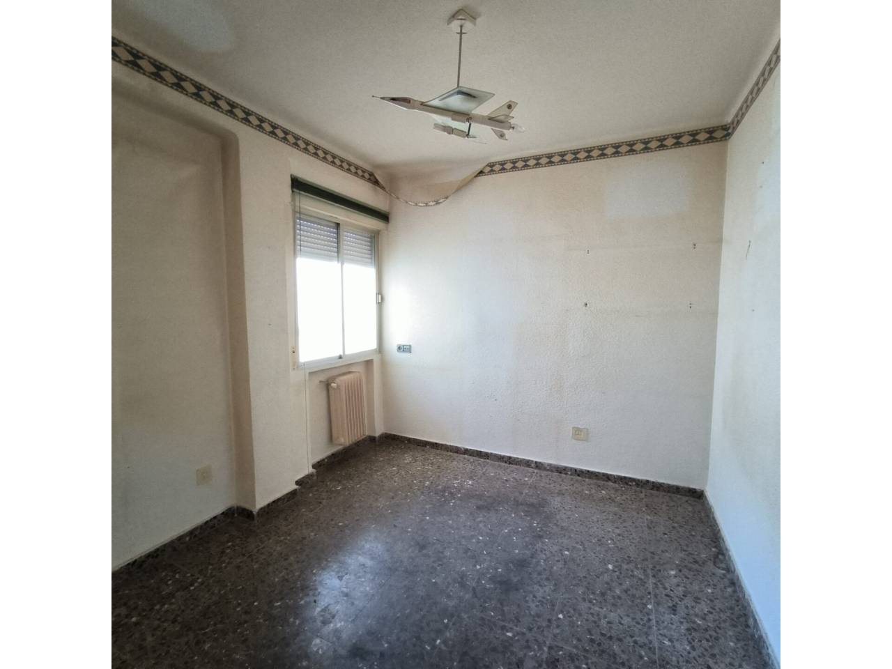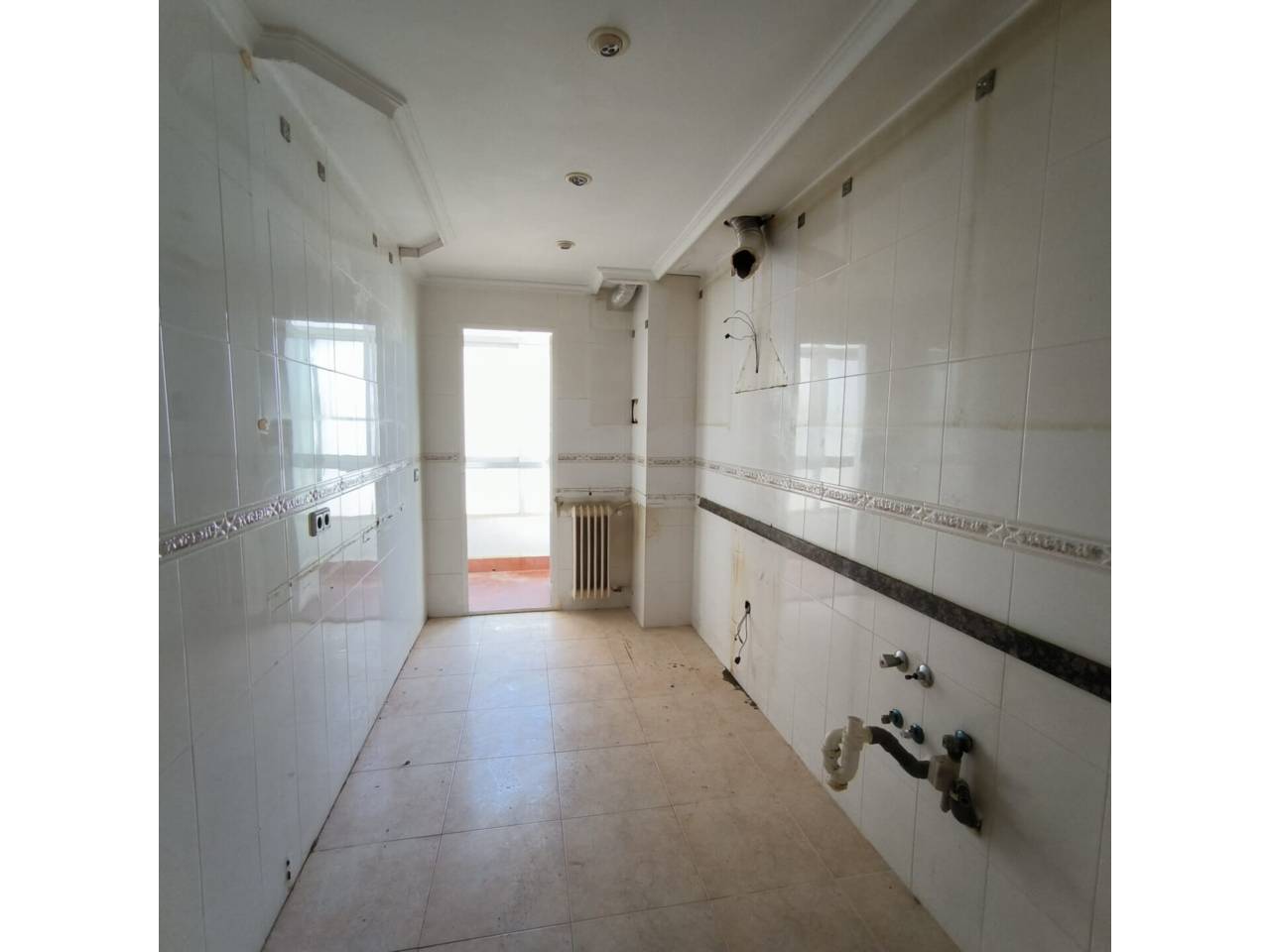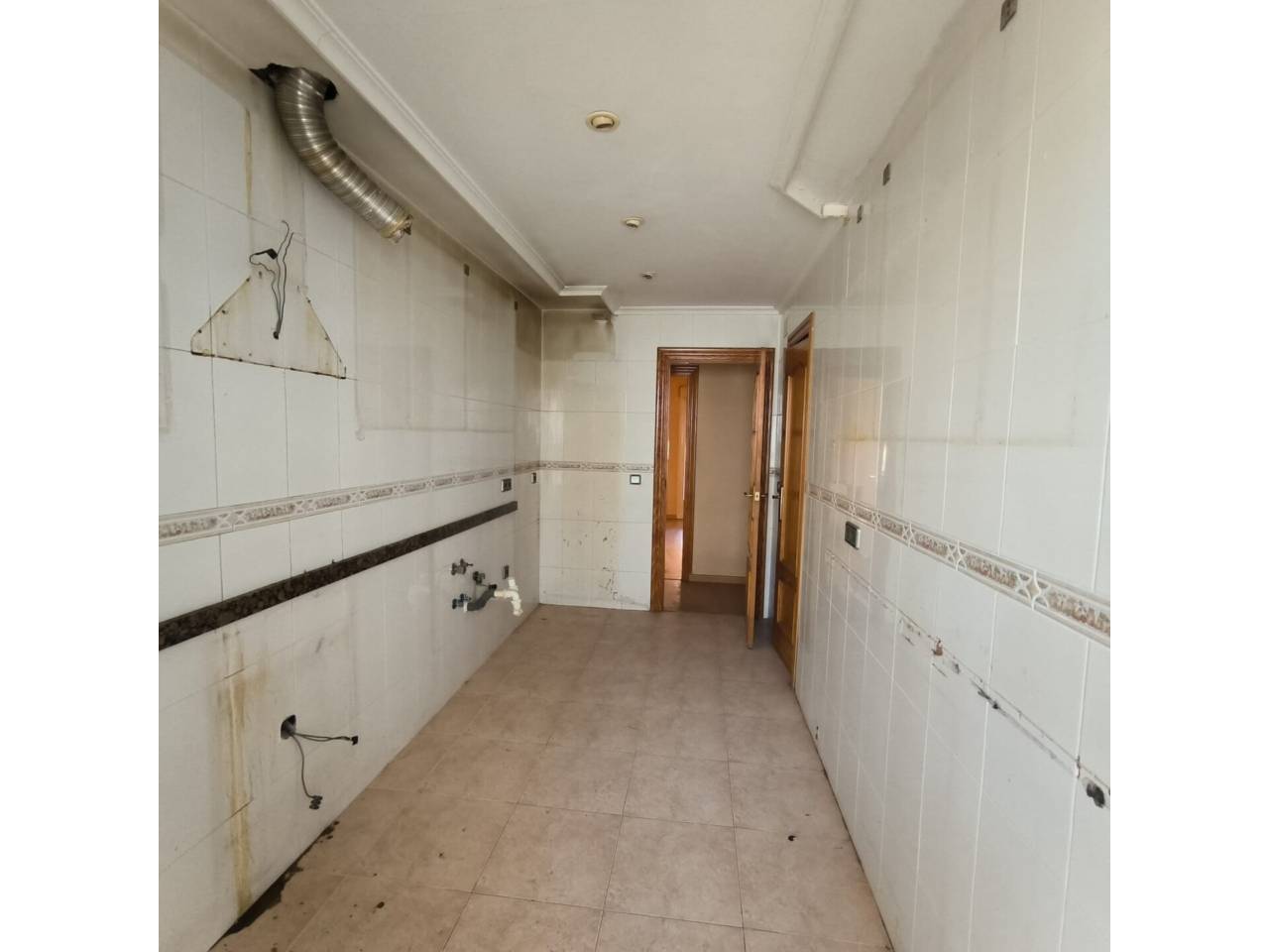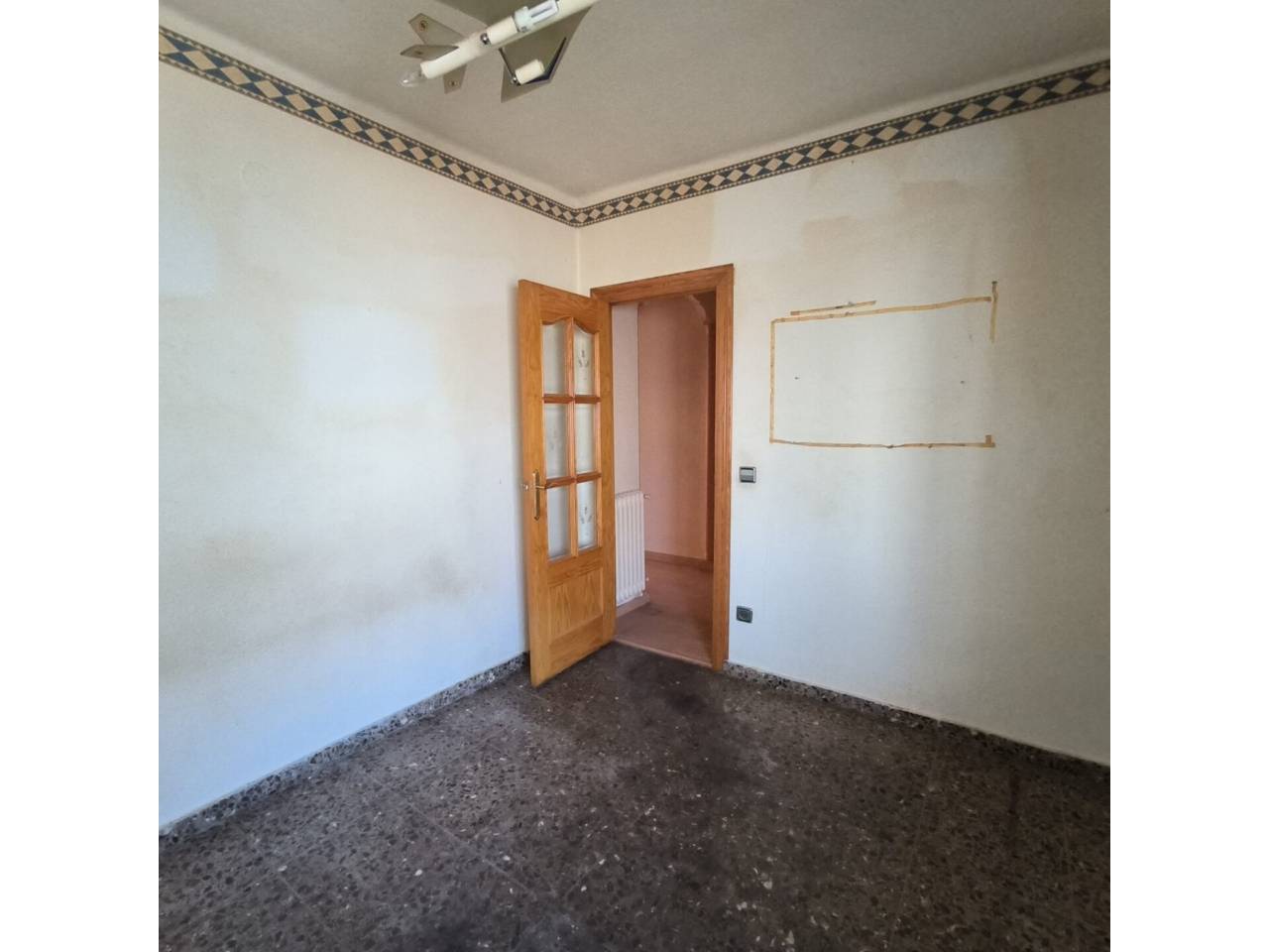 Tiene una superficie de 135 m2, distribuidos en 3 dormitorios, salón-comedor, cocina con despensa y lavadero, balcón a la calle, baño y aseo. La vivienda dispone de suelo de terrazo, puertas de pino y ventanas de aluminio dobles, además de calefacción central.
